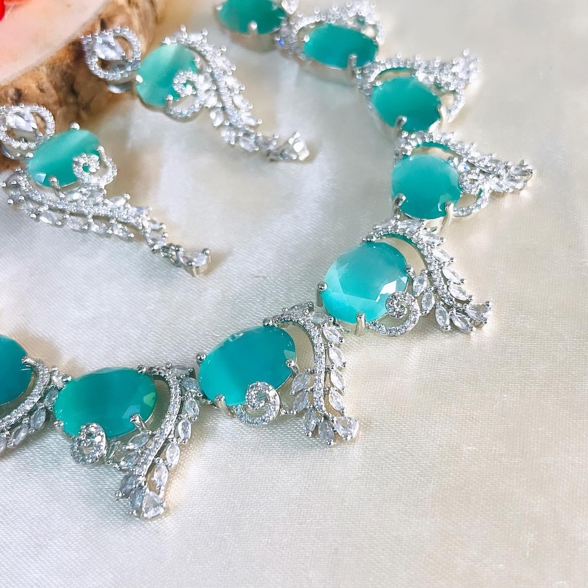 Be the first to review “Dona AMERICAN DIAMOND SET- SEA GREEN”